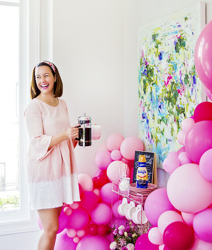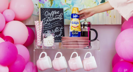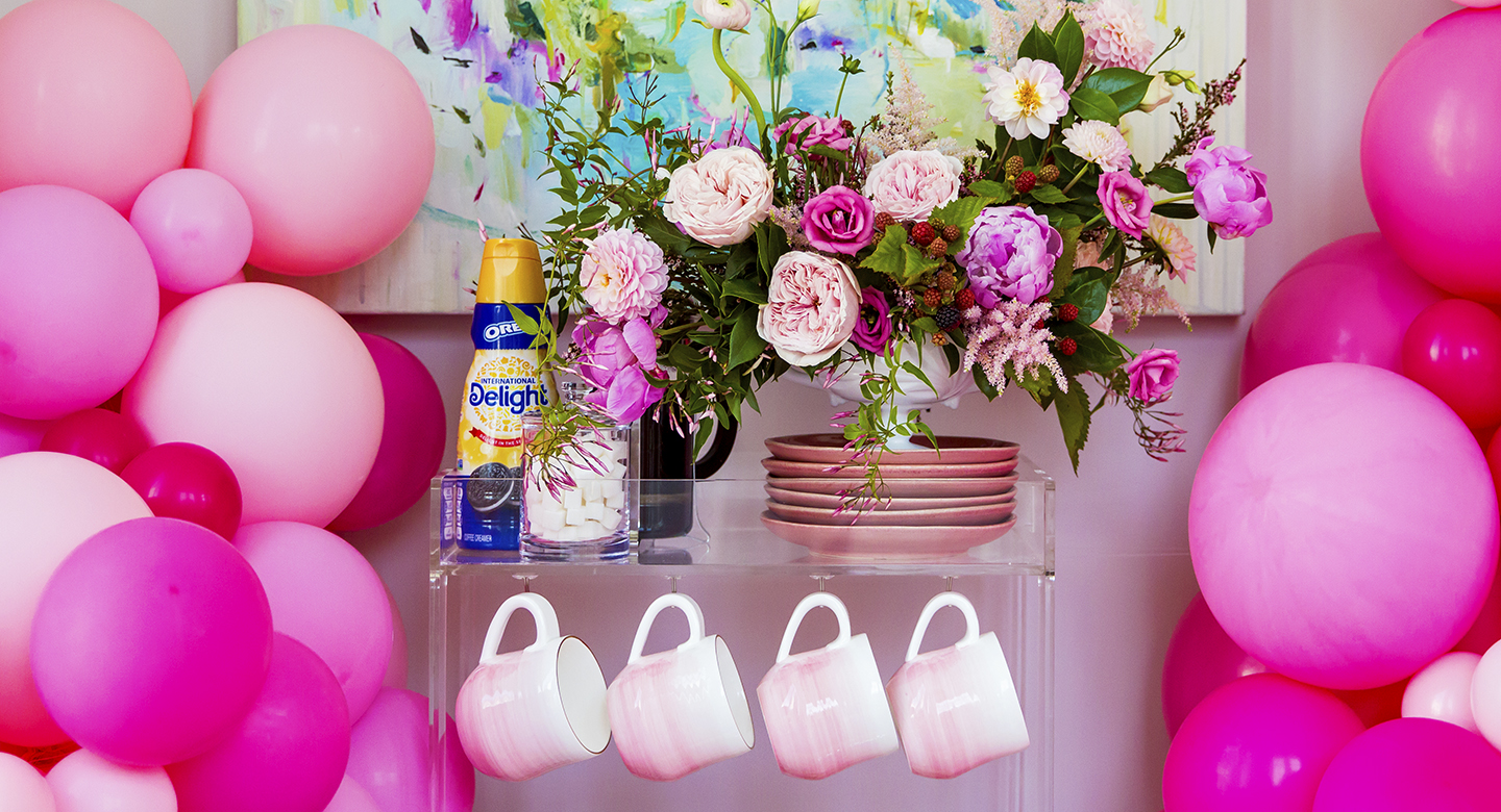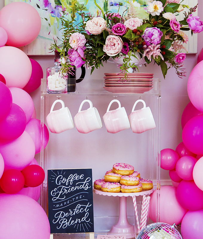 Coffee should be a celebration. Make it a party with balloons like these from Big Ass Balloons and touches of sparkle throughout. Get some pretty mugs and napkins and add some decor from around your home. Like we said, we like to make our morning coffee a bit of an indulgent experience to really start the day on the right foot. There’s no such thing as overdoing it!