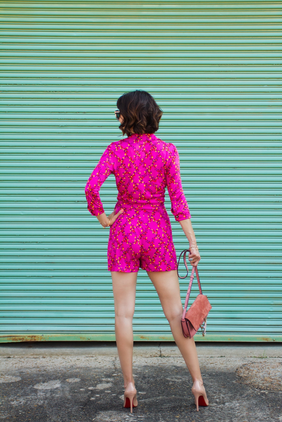 2. Tight is not right : This plays into point number one about getting the sizing right, but it merits its own point. Of course, you want the garment to have some structure to properly highlight your natural shape. But skintight is not needed here. In fact, it makes the romper veer into costume territory. So, to avoid looking like an acrobatic performer, look for a silhouette that gives you some breathing room. You can highlight your waist with a belt or by opting for a wrap style romper as I did here.