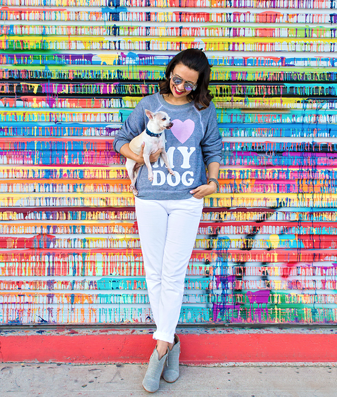 Also, speaking of @woofandwalls, we are taking over their Instagram account today. So be sure to give them a follow. It’s an account that’s exactly what the name would imply – a page filled with dogs in front of colorful walls! What’s not to love?