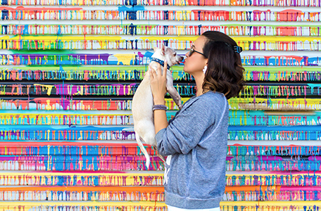 You know we love colorful walls – as evidenced by our mural guides. And we are particularly enamored by our hometown’s colorful walls. In fact, our Houston mural guide has grown to almost 100 walls! You know what else we love? Our dogs! Almost all of our team has a sweet pooch as part of their family. So, with National Dog Day approaching (it’s Sunday, August 26th, in case you’re curious), we were motivated to combine those to loves! Inspired by an Instagram account we love – @woofandwalls – we set out to photograph our favorite dogs and our favorite walls!