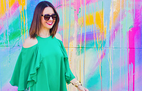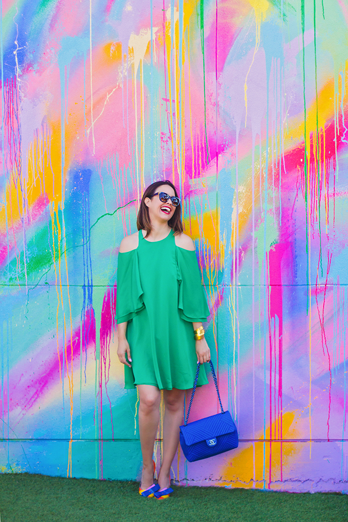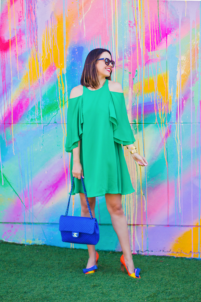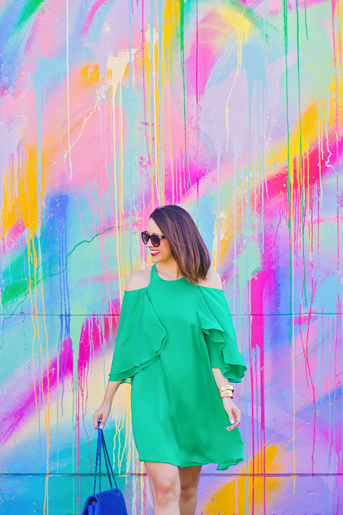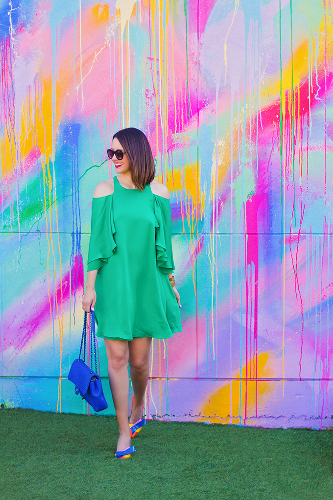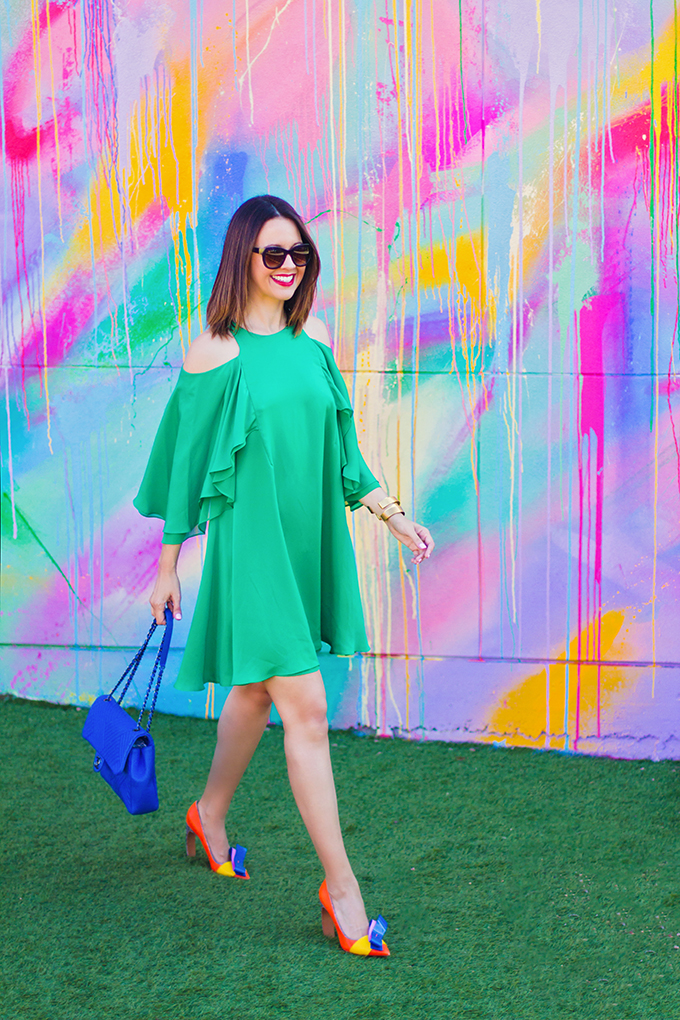 Halston Heritage cold shoulder ruffle dress (also available here)