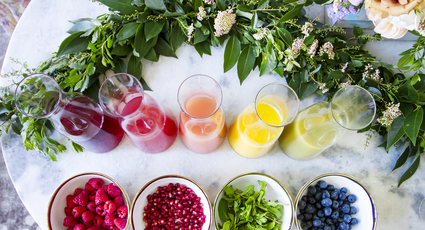 A traditional mimosa consists of orange juice, but of course don’t just leave your mimosa bar at that. That’d be a basic mimosa, and you know we aren’t basic around here! Consider offering a rainbow of fruit juices.
