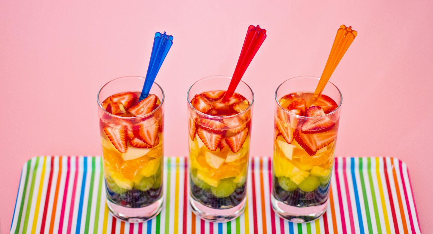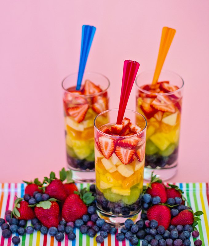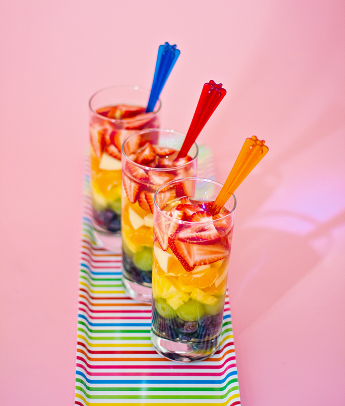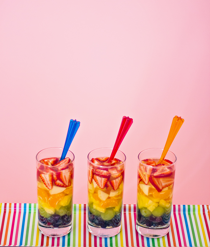 Though you wouldn’t expect us to just leave it at basic sangria, right?! With our love for color, it should be no surprise that we made rainbow sangria!