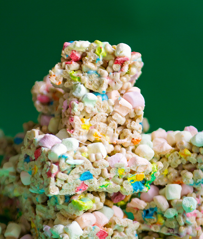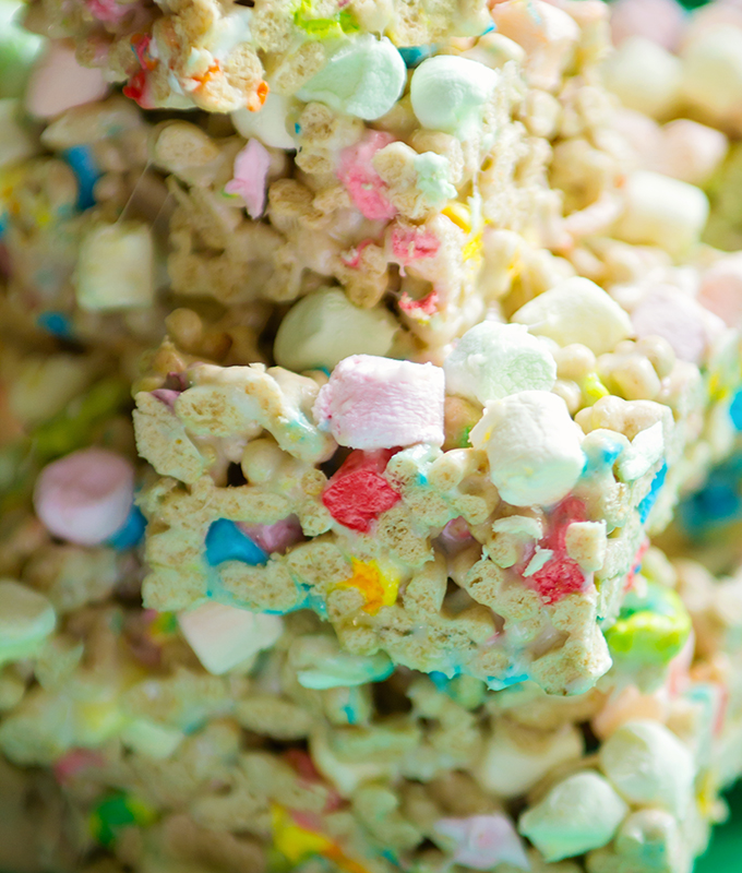 Around here, we can’t resist Lucky Charms marshmallows. Lucky Charms used to be one of my all time favorite cereals. Growing up, I’d eat it multiple times each week for breakfast, but I wouldn’t actually eat much of the “boring” part; I’d just eat the marshmallows. I know I’m not the only one who did / does that.