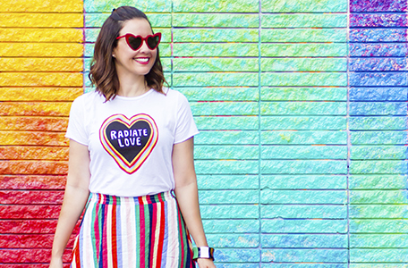 When I saw this t-shirt from ModCloth, I knew I needed to have it. Radiate love is such a powerful message and a great reminder always. And the fact that there is color quite literally radiating from the heart and message, it’s simply perfect. I immediately knew I wanted to pair it with a colorful striped skirt.