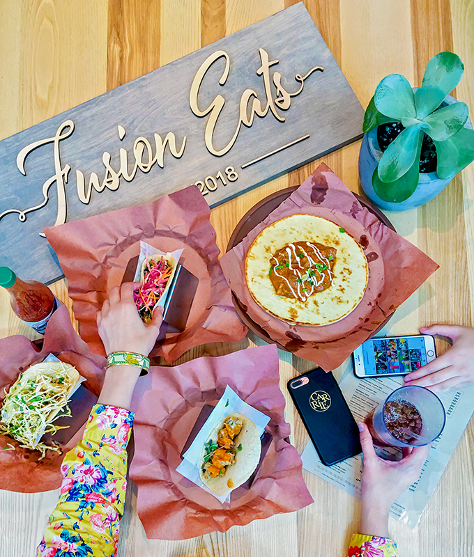 Alex: Fusion Taco puts a fun twist on traditional tacos. My favorite would have to be the tempura shrimp- so unique and tasty.