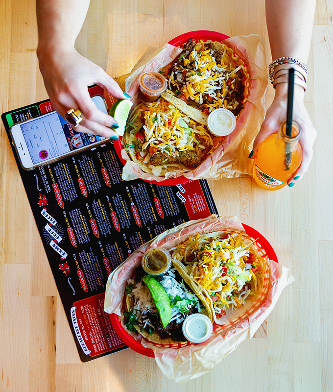 Jayme: Velvet Taco was definitely my favorite and the Montrose location (on Westheimer) is super close to me. I think it’s adorable with neon lights and fun branding, which I’m a sucker for. Everything about their tacos, from the tortilla to the massive stuffed insides, were so good. They also have a killer margarita for $6.50 and are open incredibly late.